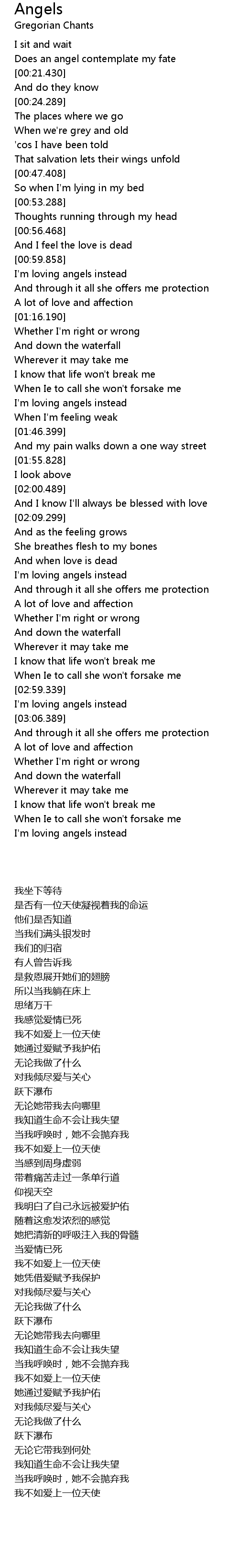 | [02:23.99] | I'm loving angels instead |