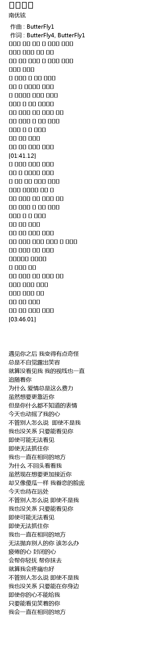 | [00:01.000] | 作词 : ButterFly4, ButterFly1 |