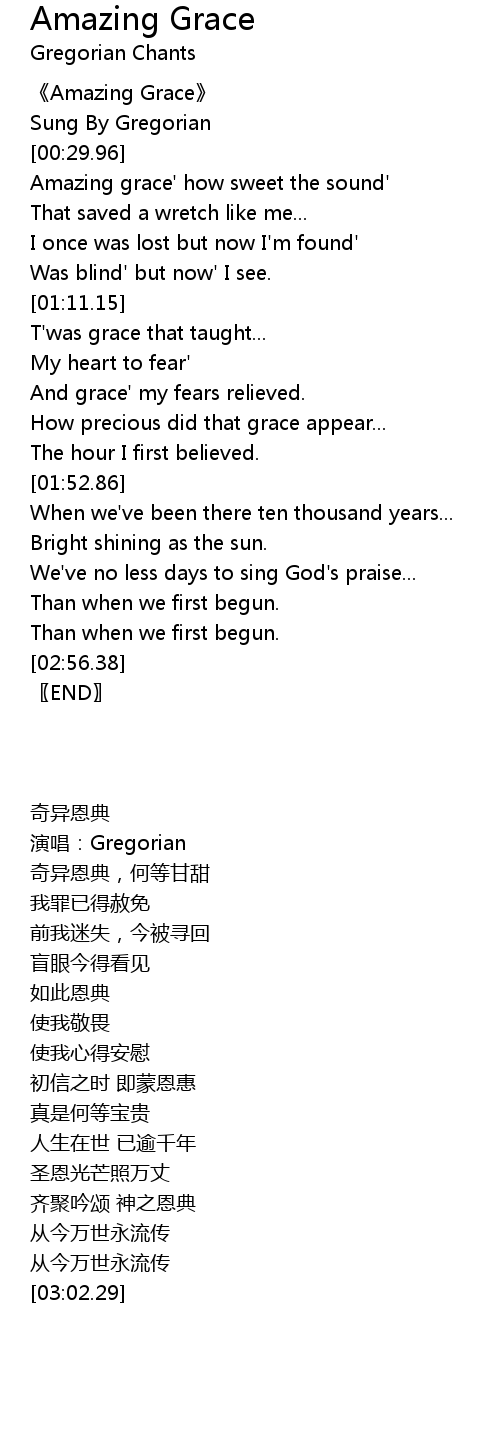 | [00:31.26] | Amazing grace' how sweet the sound' |