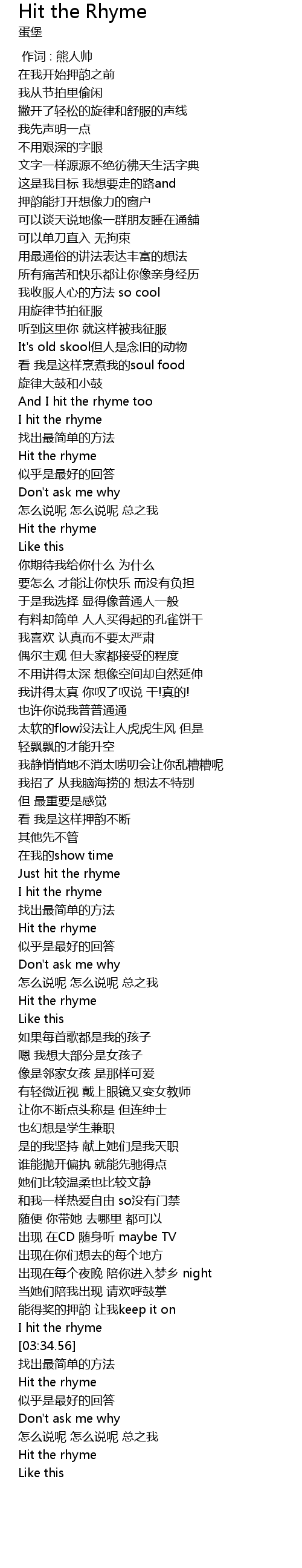 | [03:33.56] | I hit the rhyme |