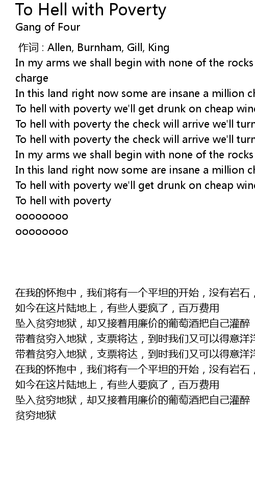 | 歌曲 | To Hell with Poverty |