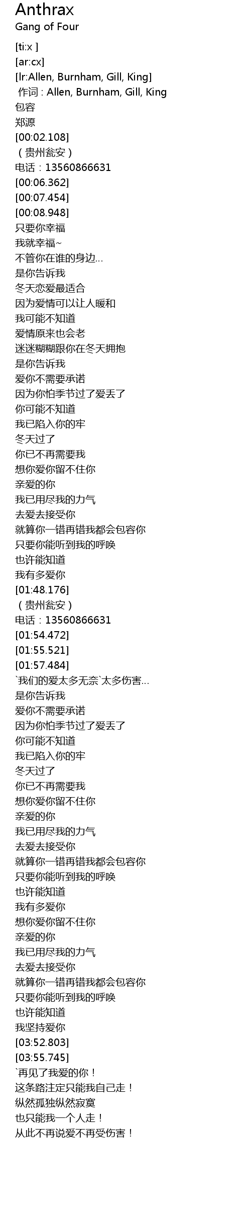 | [00:00.00] | zuo ci : Allen, Burnham, Gill, King |