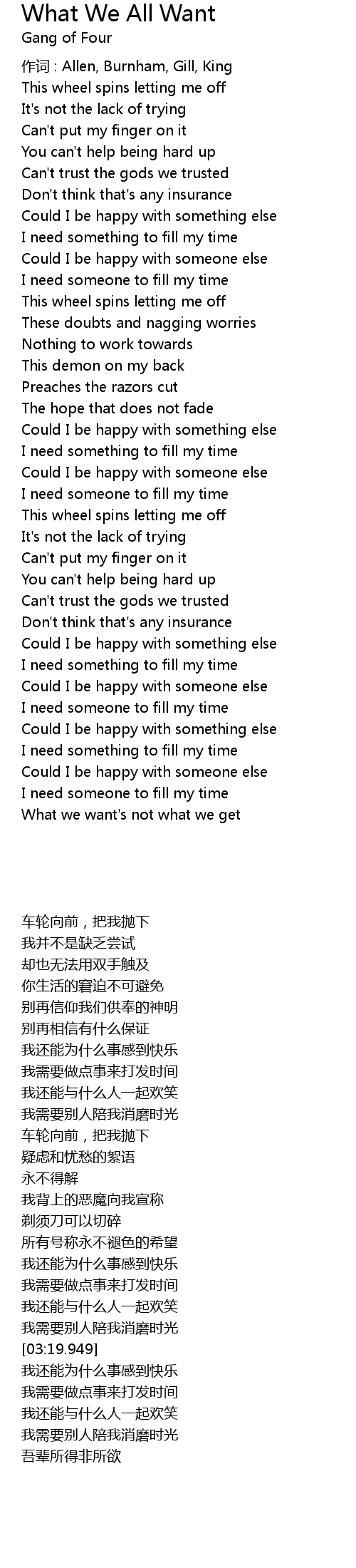 | 歌曲 | What We All Want |