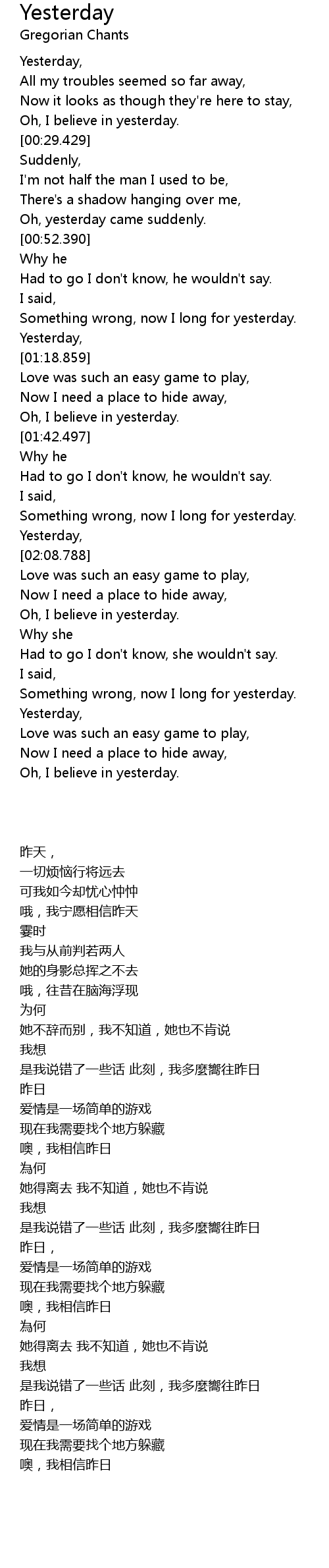 Yesterday, |