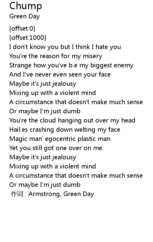 | [00:00.00] | 作词 : Armstrong, Green Day |