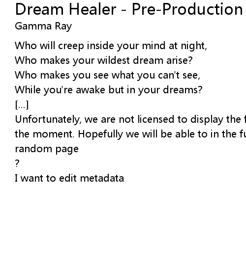 | 歌曲 | Dream Healer - Pre-Production Version |