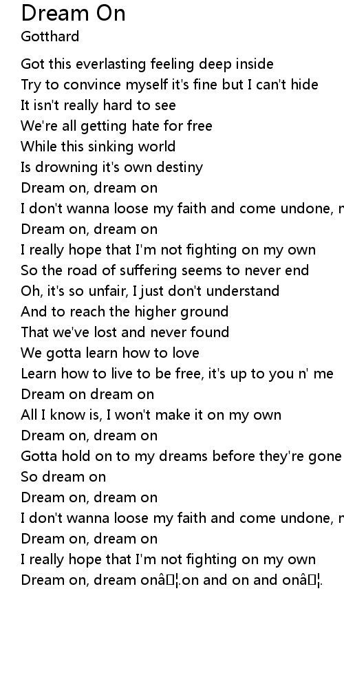 | Dream on, dream on | |