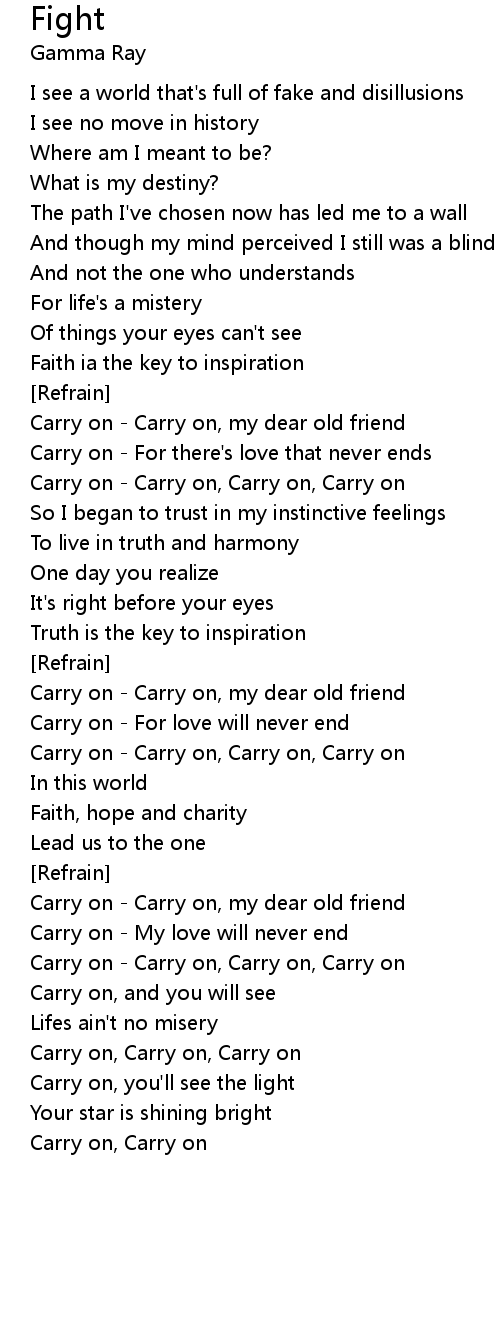 Carry on - Carry on, my dear old friend |
