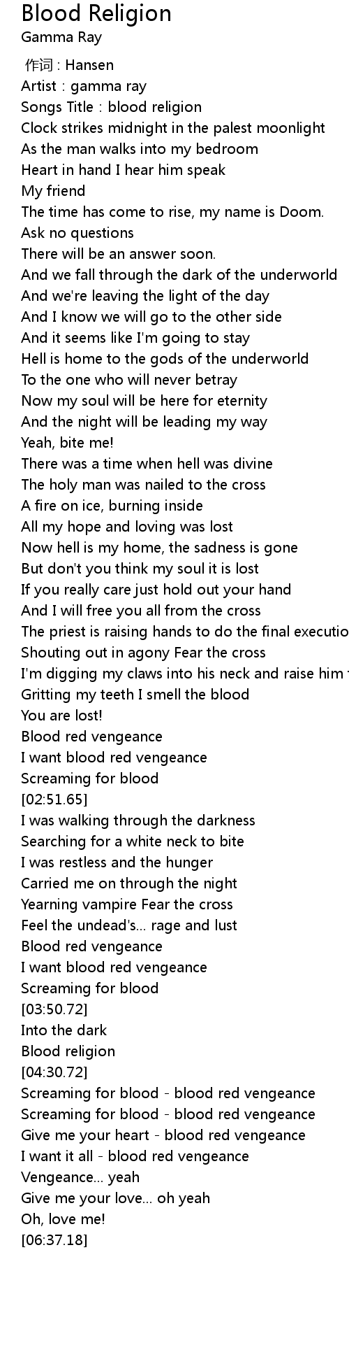 | [00:03.57] | Songs Title: blood religion |