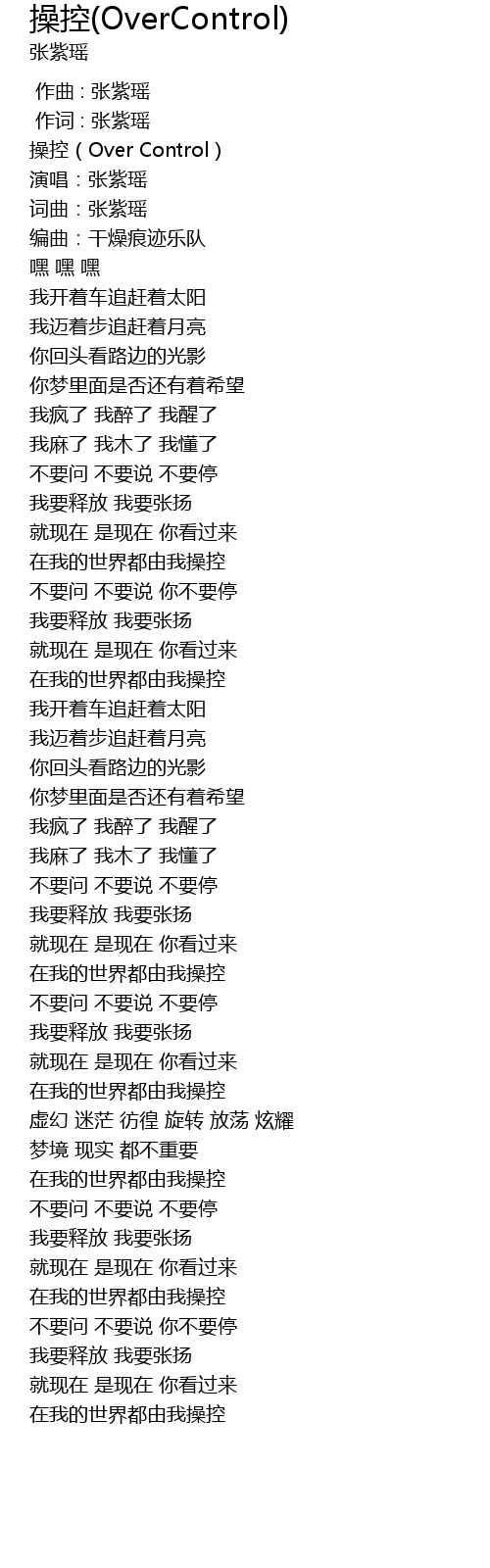 | [01:33.01] | zài wǒ de shì jiè dōu yóu wǒ cāo kòng |