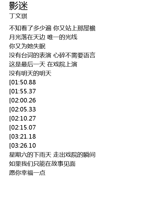 | [01:31.14] | 星期六的下雨天 走出戏院的瞬间 |