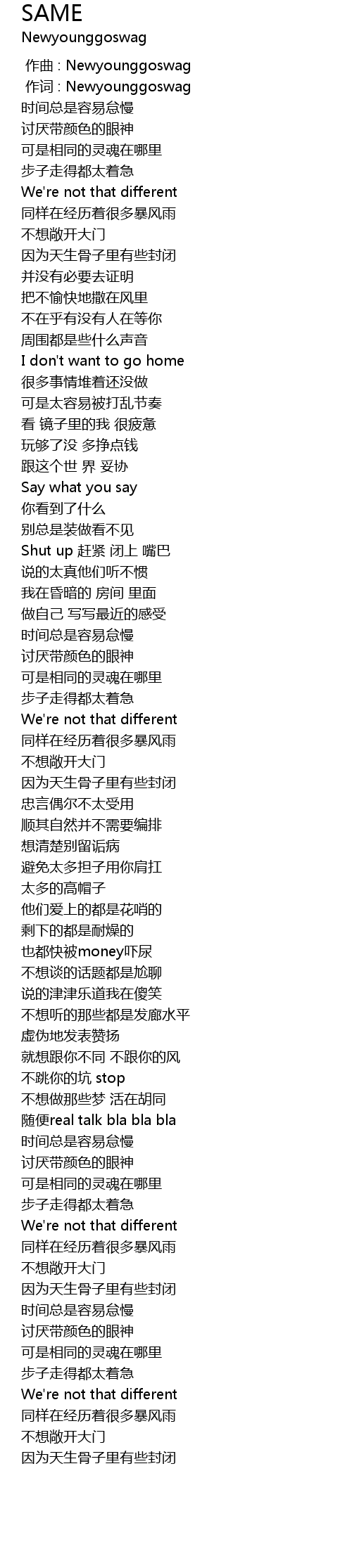 | [00:01.000] | 作词 : Newyounggoswag |