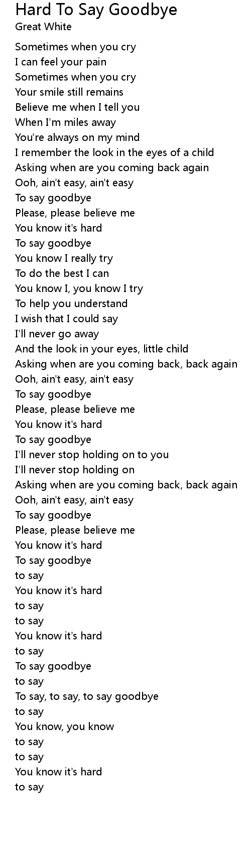 To say, to say, to say goodbye |