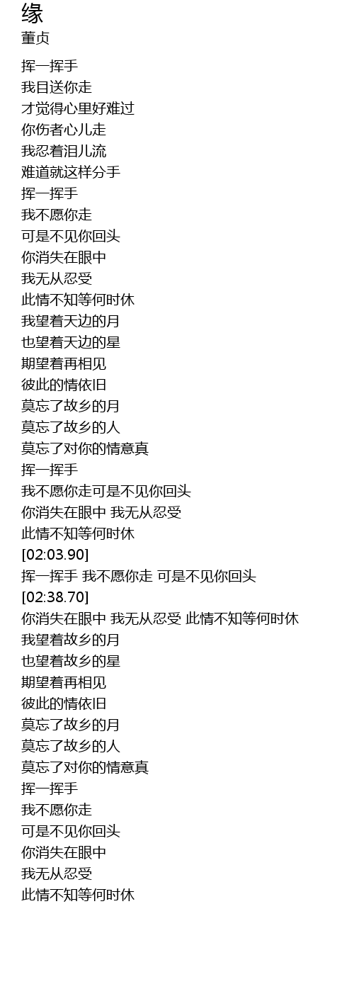 | [02:26.37] | 挥一挥手 我不愿你走 可是不见你回头 |