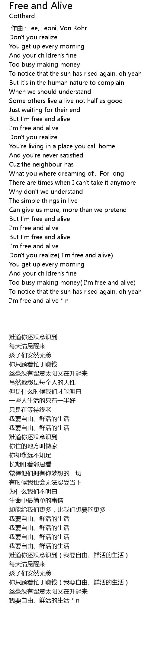 | [03:20.94] | Don't you realize( I'm free and alive) |
