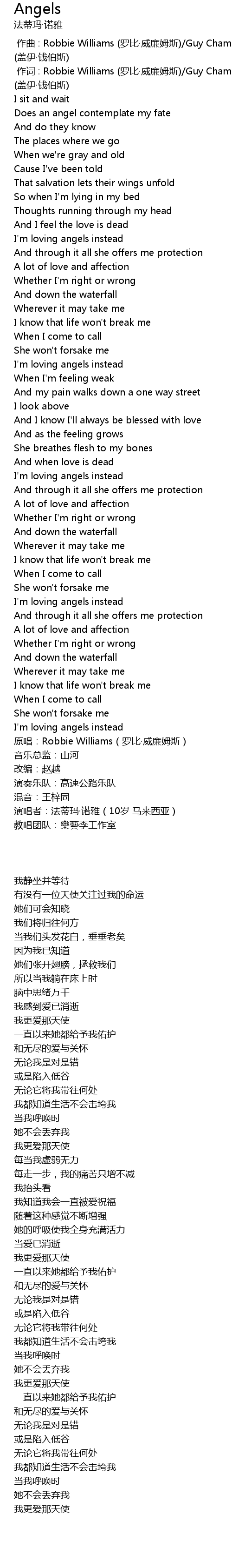 | [00:01.000] | 作词 : Robbie Williams (罗比·威廉姆斯)/Guy Chambers (盖伊·钱伯斯) |