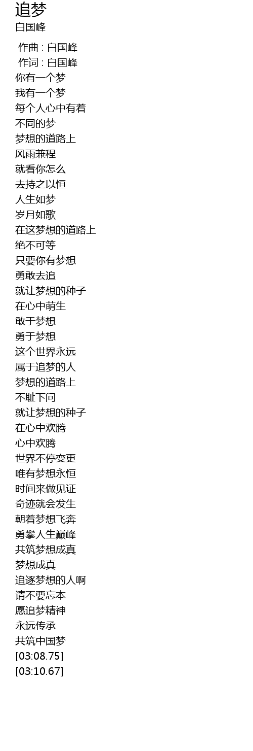 | [02:38.78] | zhui zhu meng xiang de ren a |