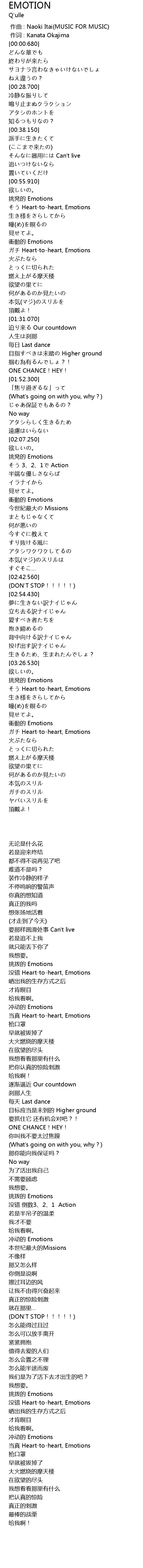 | [03:39.860] | 衝動的 Emotions |