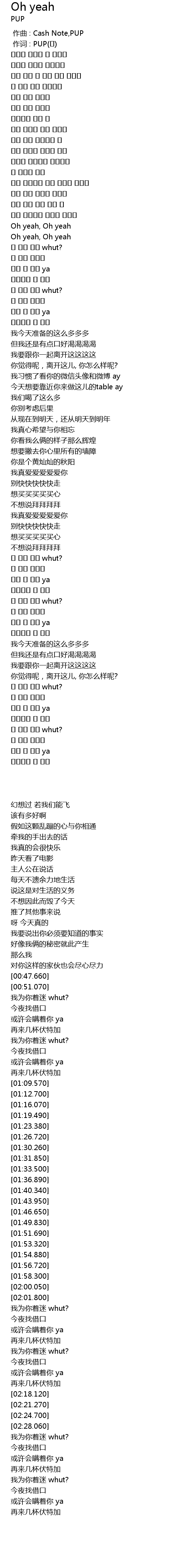 | [00:47.660] | Oh yeah, Oh yeah |