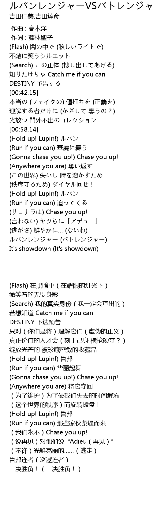 | [00:58.70] | (Hold up! Lupin!) ルパン |