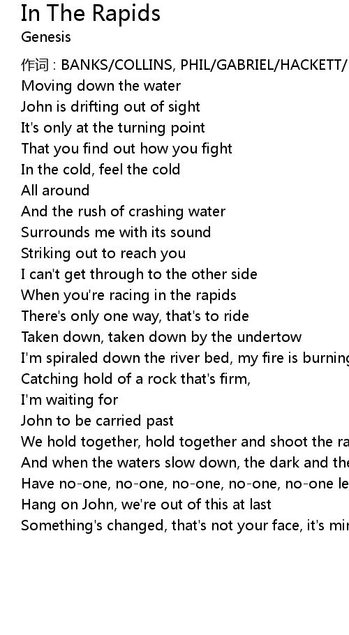 | 作词 : BANKS/COLLINS, PHIL/GABRIEL/HACKETT/RUTHERFORD | |
