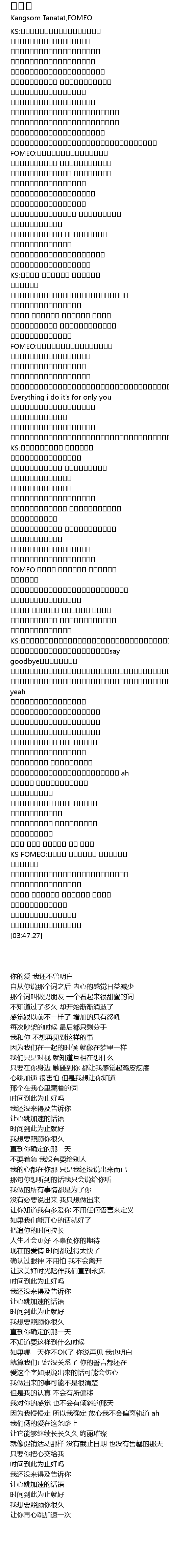 | [00:37.31] | FOMEO:เรื่องฉันกับเธอ ไม่อยากเจอ อะไรแบบนั้น |