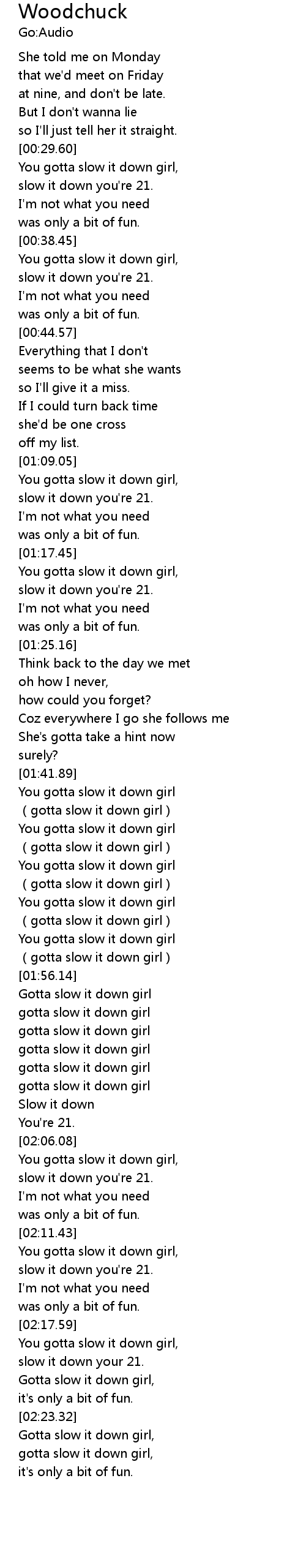 | [01:44.49] | You gotta slow it down girl |