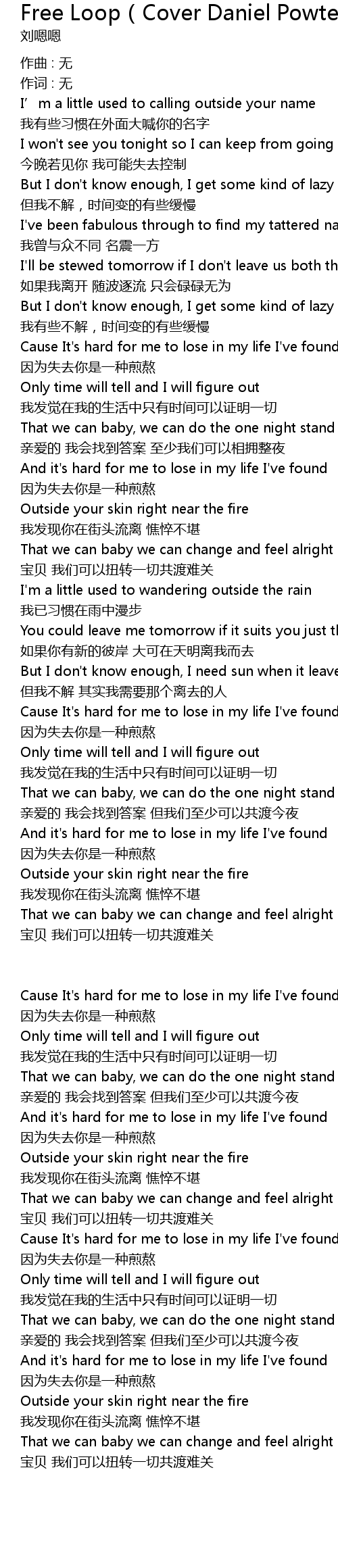 | 歌曲 | Free Loop(Cover Daniel Powter) |