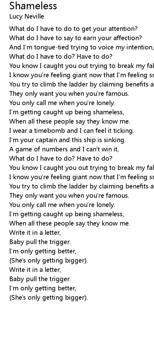 I'm getting caught up being shameless, |