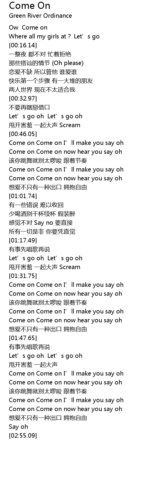 | [00:48.44] | Come on Come on now hear you say oh |