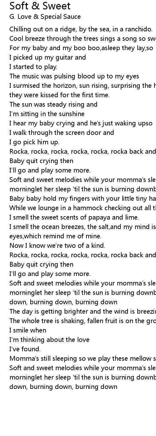 Soft and sweet melodies while your momma's sleepinglet her sleep in late this morninglet her sleep 'til the sun is burning downburning down down downburning down, burning down, burning down |