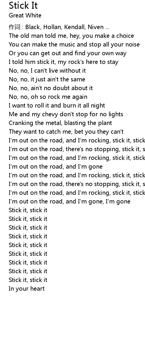 | I' m out on the road, there' s no stopping, stick it, stick it | |