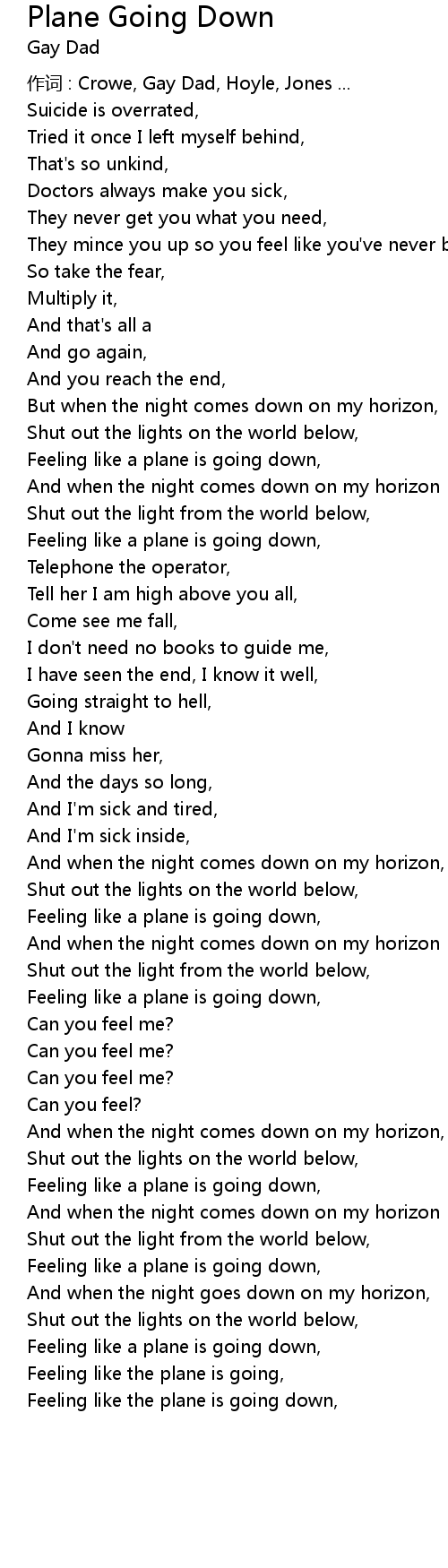 | Feeling like the plane is going down, |