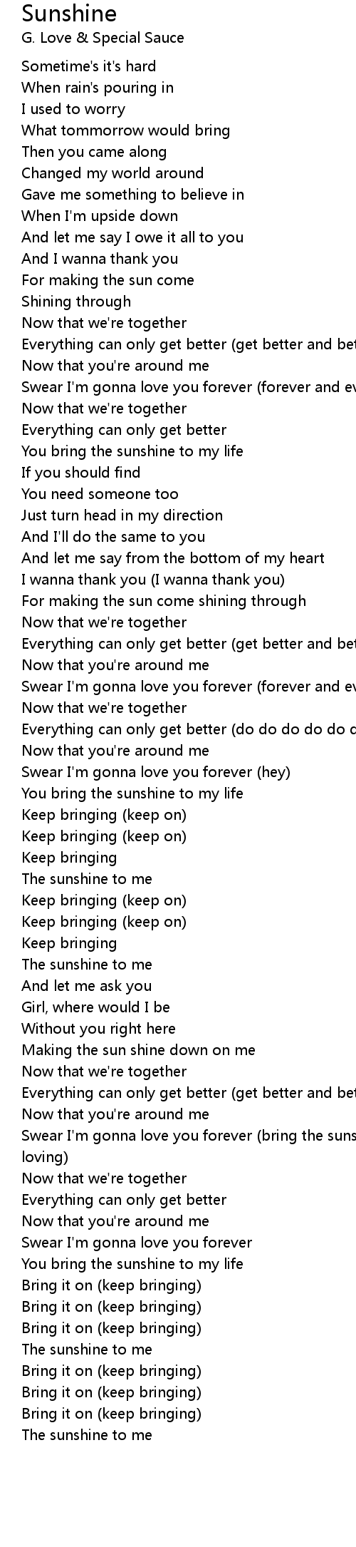 You bring the sunshine to my life |