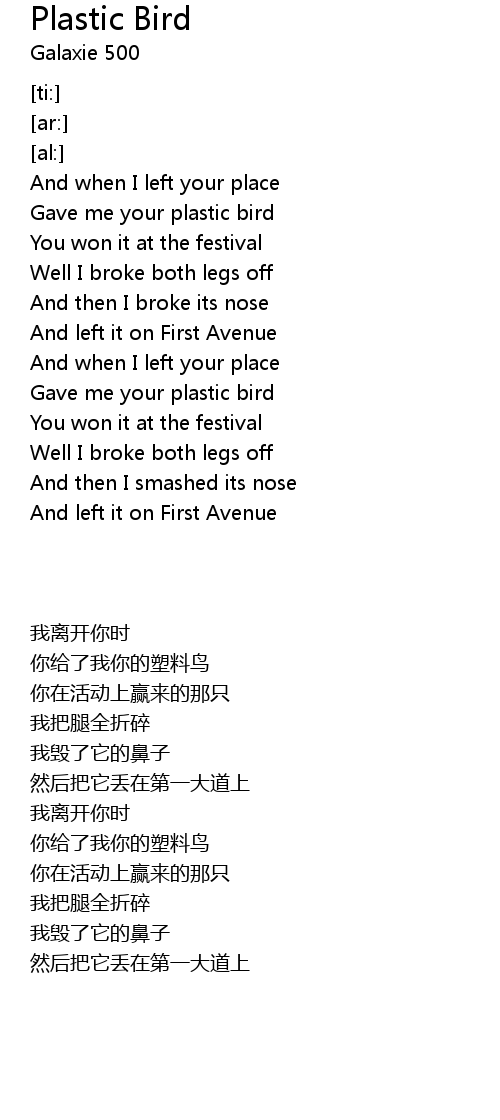 | [00:25.87] | 你给了我你的塑料鸟 |