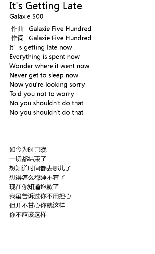 | 歌曲 | It's Getting Late |