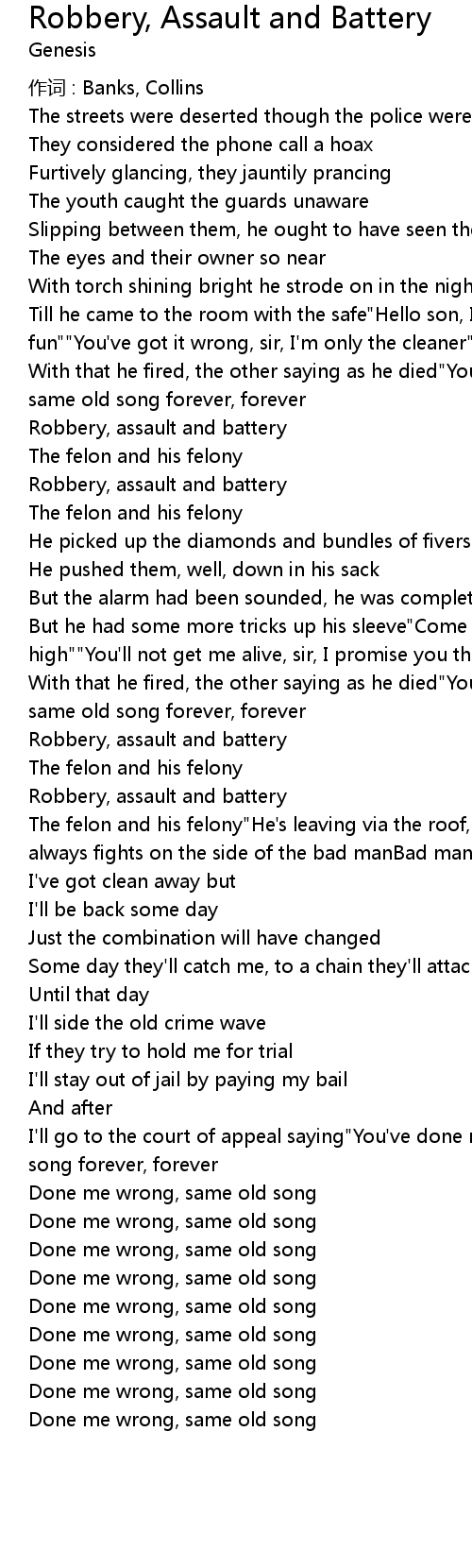 | 歌曲 | Robbery, Assault and Battery |