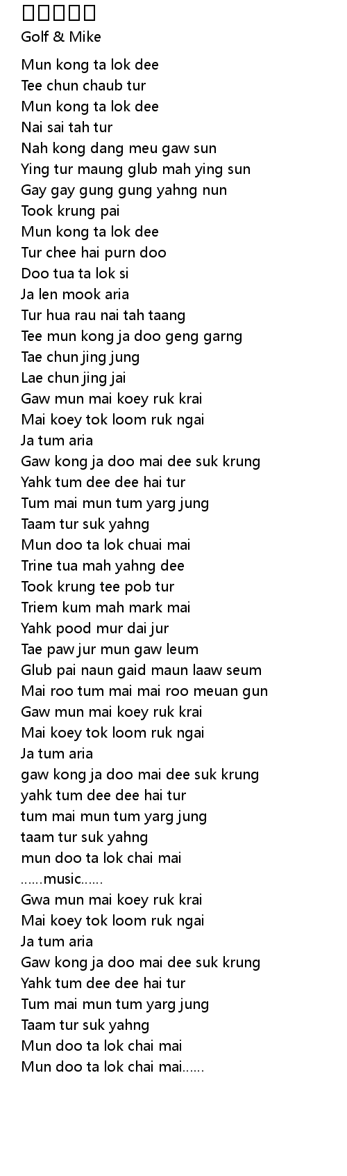 | [03:10] | Mun doo ta lok chai mai |