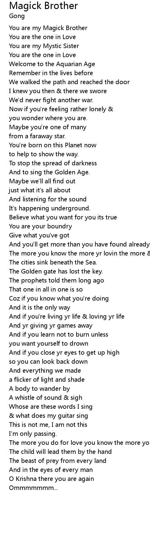 You are my Magick Brother |