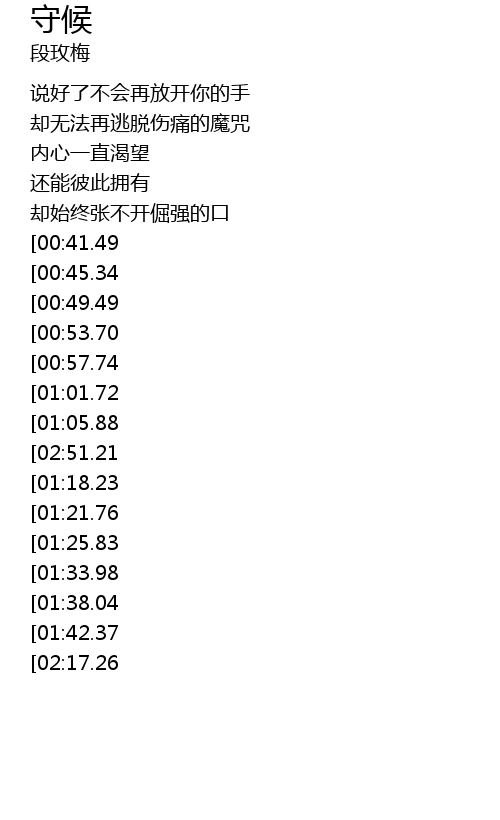 | [03:20.13][01:42.37] | 我还愿再为你守候 |