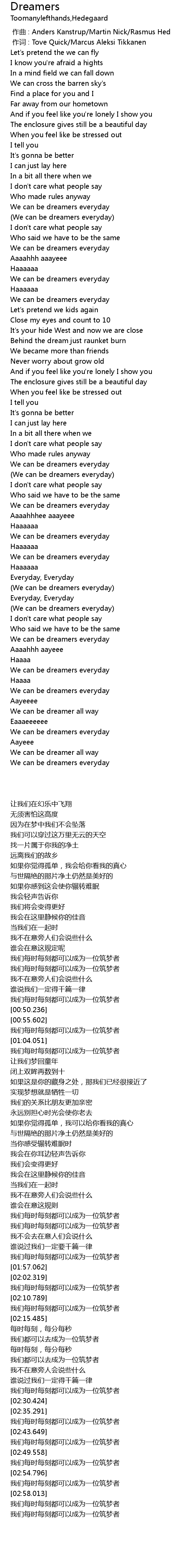 | [02:17.951] | (We can be dreamers everyday) |