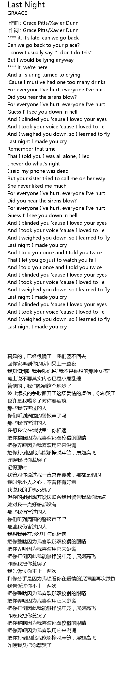 | [00:00.000] | zuò qǔ : Grace Pitts Xavier Dunn |