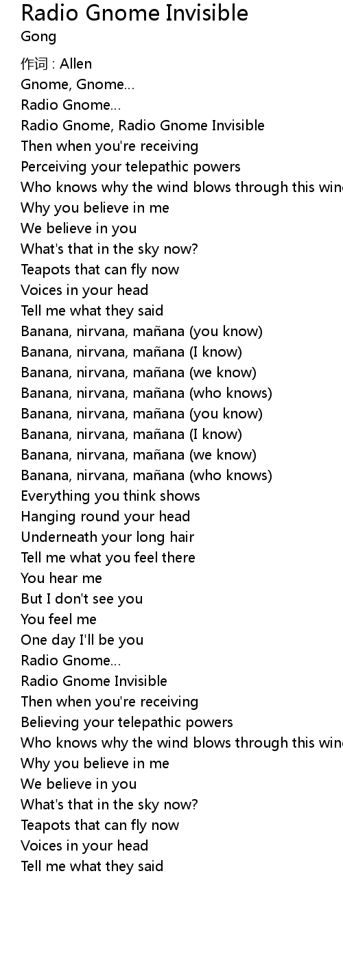 | 歌曲 | Radio Gnome Invisible |