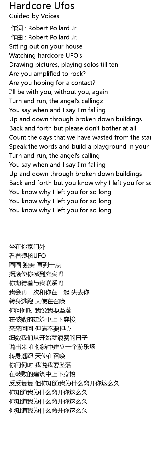 | [00:00.000] | 作词 : Robert Pollard Jr. |