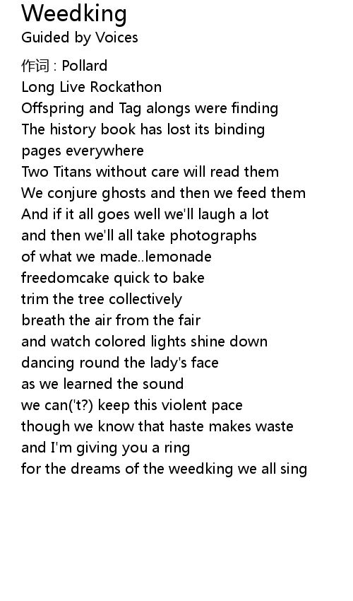 | for the dreams of the weedking we all sing |