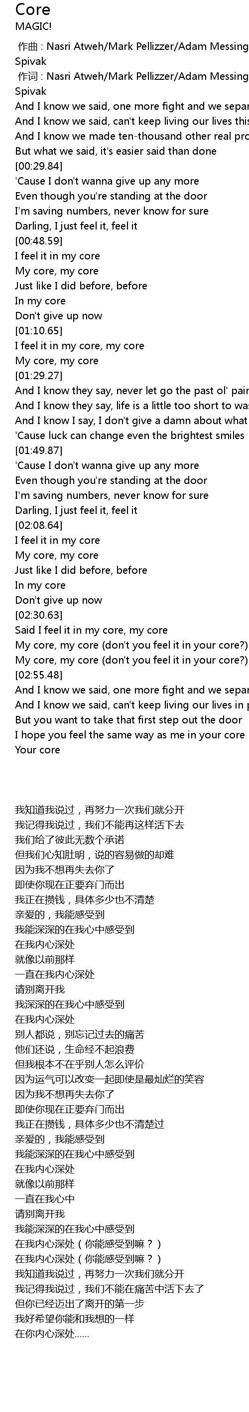| [02:50.24] | My core, my core don' t you feel it in your core? |