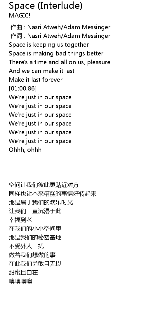 | [00:21.35] | Space is keeping us together |