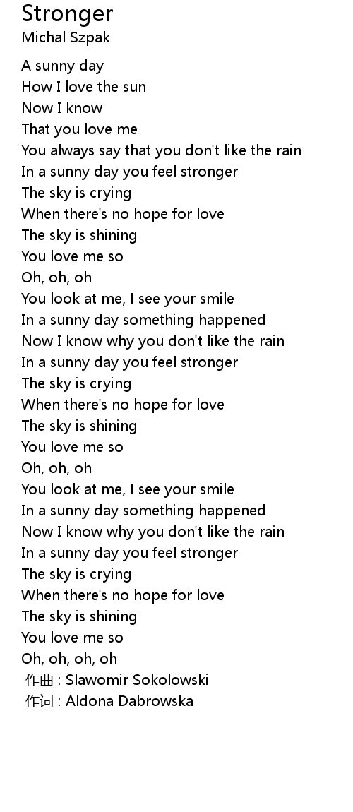 | [01:22] | In a sunny day you feel stronger |