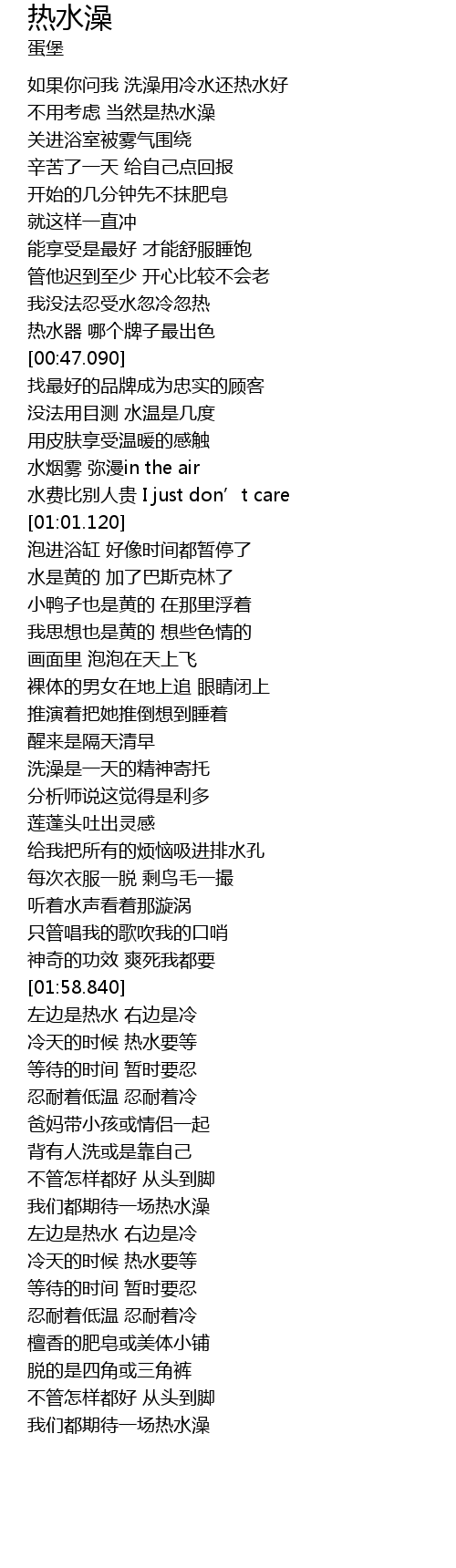 | [01:39.280] | 洗澡是一天的精神寄托 |