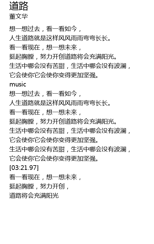 | [00:49.93] | 人生道路就是这样风风雨雨弯弯长长。 |